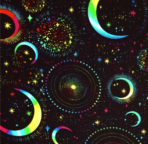 Tissu: Timeless treasures avec l’espace, des lunes, des étoiles, arc-en-ciel